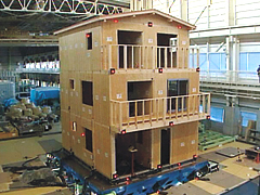 家の強度は、そのまま生命の安全につながります。従来の軸組工法と、テックワン金具を使用した住宅で、1995年の阪神淡路大震災を忠実に再現した三次元大振動試験によって、実物大の家を実際に揺らして、損壊の程度を比較。