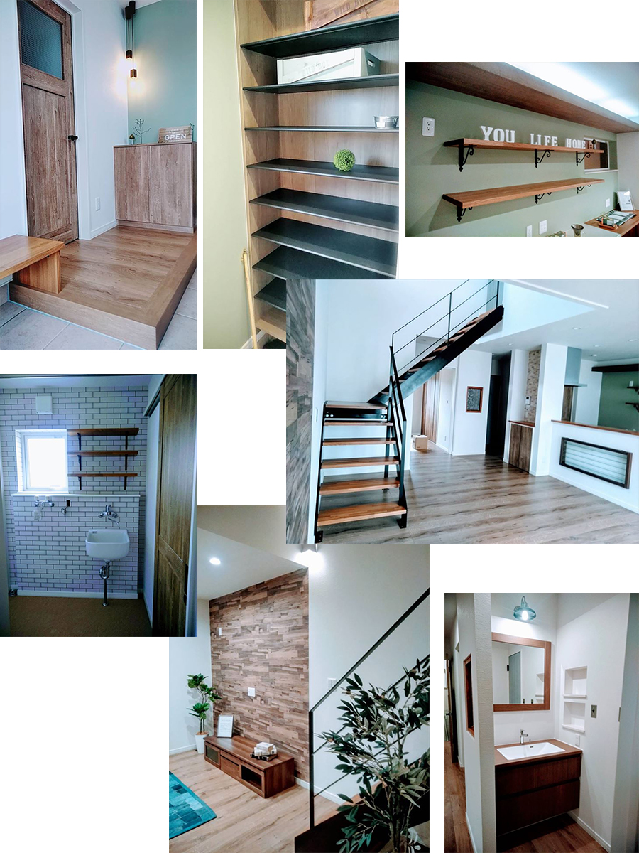 優しい木調にアイアン鉄骨のオーダー階段 アンティークガラスをアクセントに雑貨が映える家つくり。